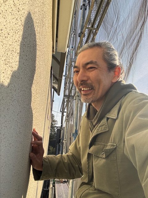 外壁を指でなぞると白い粉がつく現象で、塗膜(防水層)が機能していない状態です。