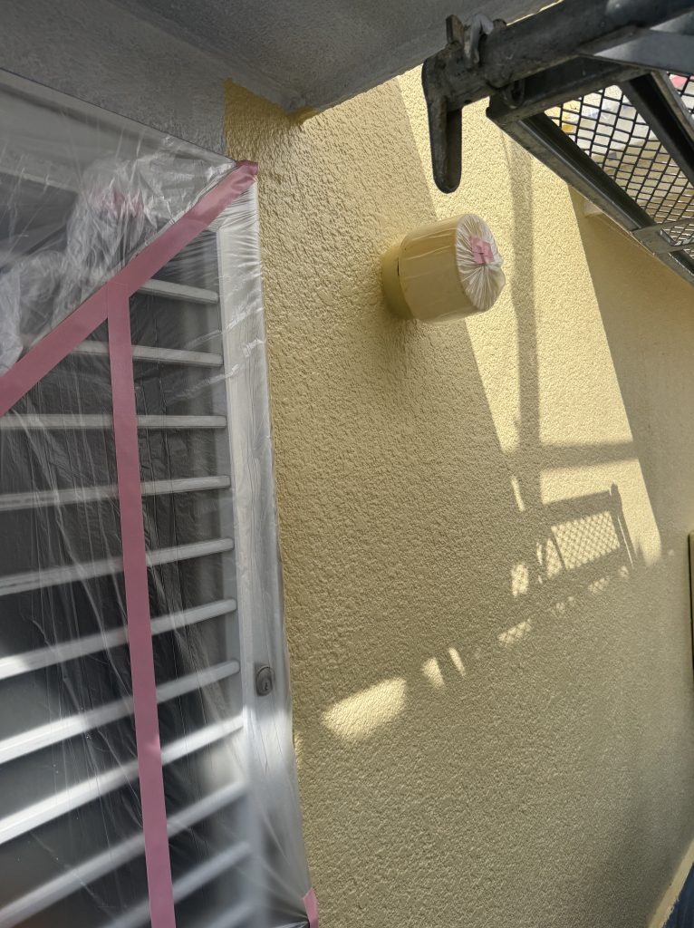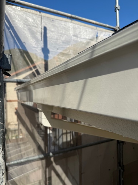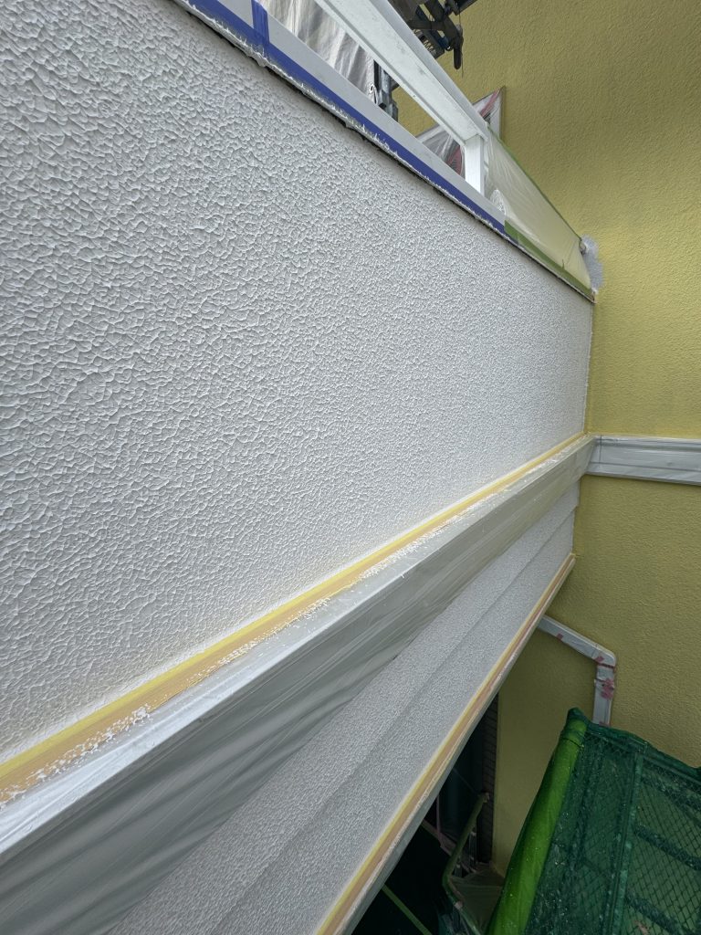 外壁塗装3回目の上塗りを行ないます。外壁の防水機能も回復し綺麗になりました